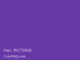Hex #6739a8 Color is a normal violet color and the nearest color is Royal Purple #6b3fa0. Hex code #6739a8 and RGB value is rgb(103,57,168). In RGB color space, this color is composed of 40% red, 22% green, 66% blue, In CMYK color space, this color is composed of 39% cyan, 66% magenta, 0% yellow , 34% black , In HSL color space, this color has a hue angle of 265° , 49% saturation and 44% lightness.
