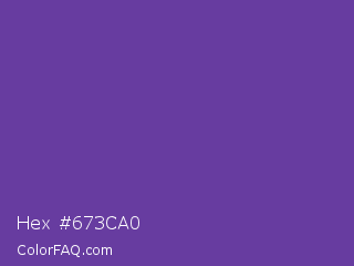 Hex #673ca0 Color is a normal violet color and the nearest color is Royal Purple #6b3fa0. Hex code #673ca0 and RGB value is rgb(103,60,160). In RGB color space, this color is composed of 40% red, 24% green, 63% blue, In CMYK color space, this color is composed of 36% cyan, 63% magenta, 0% yellow , 37% black , In HSL color space, this color has a hue angle of 266° , 45% saturation and 43% lightness.