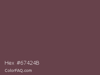 Hex #67424b Color is a normal red color and the nearest color is Deep Tuscan Red #66424d. Hex code #67424b and RGB value is rgb(103,66,75). In RGB color space, this color is composed of 40% red, 26% green, 29% blue, In CMYK color space, this color is composed of 0% cyan, 36% magenta, 27% yellow , 60% black , In HSL color space, this color has a hue angle of 345° , 22% saturation and 33% lightness.