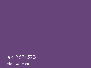 Hex #67457b Color is a normal purple color and the nearest color is Cyber Grape #58427c. Hex code #67457b and RGB value is rgb(103,69,123). In RGB color space, this color is composed of 40% red, 27% green, 48% blue, In CMYK color space, this color is composed of 16% cyan, 44% magenta, 0% yellow , 52% black , In HSL color space, this color has a hue angle of 278° , 28% saturation and 38% lightness.