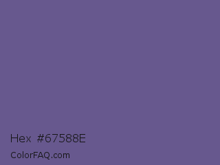 Hex #67588e Color is a normal indigo color and the nearest color is Butterfly Bush #624e9a. Hex code #67588e and RGB value is rgb(103,88,142). In RGB color space, this color is composed of 40% red, 35% green, 56% blue, In CMYK color space, this color is composed of 27% cyan, 38% magenta, 0% yellow , 44% black , In HSL color space, this color has a hue angle of 257° , 23% saturation and 45% lightness.