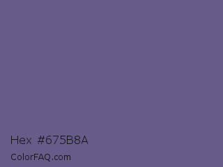 Hex #675b8a Color is a normal indigo color and the nearest color is Dark Blue Gray #666699. Hex code #675b8a and RGB value is rgb(103,91,138). In RGB color space, this color is composed of 40% red, 36% green, 54% blue, In CMYK color space, this color is composed of 25% cyan, 34% magenta, 0% yellow , 46% black , In HSL color space, this color has a hue angle of 255° , 21% saturation and 45% lightness.