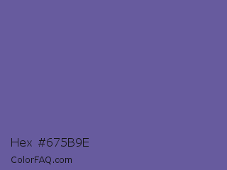 Hex #675b9e Color is a normal indigo color and the nearest color is Scampi #675fa6. Hex code #675b9e and RGB value is rgb(103,91,158). In RGB color space, this color is composed of 40% red, 36% green, 62% blue, In CMYK color space, this color is composed of 35% cyan, 42% magenta, 0% yellow , 38% black , In HSL color space, this color has a hue angle of 251° , 27% saturation and 49% lightness.