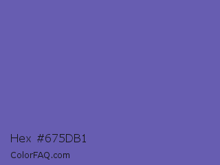 Hex #675db1 Color is a normal indigo color and the nearest color is Blue Violet #6456b7. Hex code #675db1 and RGB value is rgb(103,93,177). In RGB color space, this color is composed of 40% red, 36% green, 69% blue, In CMYK color space, this color is composed of 42% cyan, 47% magenta, 0% yellow , 31% black , In HSL color space, this color has a hue angle of 247° , 35% saturation and 53% lightness.