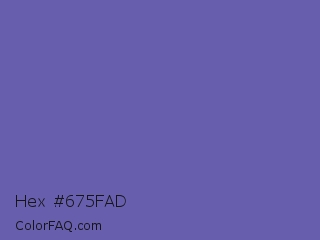 Hex #675fad Color is a normal indigo color and the nearest color is Scampi #675fa6. Hex code #675fad and RGB value is rgb(103,95,173). In RGB color space, this color is composed of 40% red, 37% green, 68% blue, In CMYK color space, this color is composed of 40% cyan, 45% magenta, 0% yellow , 32% black , In HSL color space, this color has a hue angle of 246° , 32% saturation and 53% lightness.