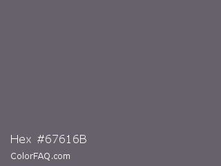 Hex #67616b Color is a normal purple color and the nearest color is Salt Box #685e6e. Hex code #67616b and RGB value is rgb(103,97,107). In RGB color space, this color is composed of 40% red, 38% green, 42% blue, In CMYK color space, this color is composed of 4% cyan, 9% magenta, 0% yellow , 58% black , In HSL color space, this color has a hue angle of 276° , 5% saturation and 40% lightness.