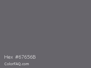 Hex #67656b Color is a normal indigo color and the nearest color is Granite Gray #676767. Hex code #67656b and RGB value is rgb(103,101,107). In RGB color space, this color is composed of 40% red, 40% green, 42% blue, In CMYK color space, this color is composed of 4% cyan, 6% magenta, 0% yellow , 58% black , In HSL color space, this color has a hue angle of 260° , 3% saturation and 41% lightness.