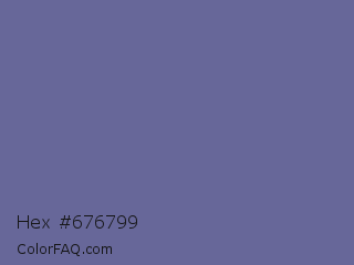 Hex #676799 Color is a normal blue color and the nearest color is Dark Blue Gray #666699. Hex code #676799 and RGB value is rgb(103,103,153). In RGB color space, this color is composed of 40% red, 40% green, 60% blue, In CMYK color space, this color is composed of 33% cyan, 33% magenta, 0% yellow , 40% black , In HSL color space, this color has a hue angle of 240° , 20% saturation and 50% lightness.