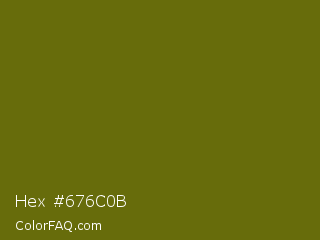 Hex #676c0b Color is a dark yellow color and the nearest color is Olivetone #716e10. Hex code #676c0b and RGB value is rgb(103,108,11). In RGB color space, this color is composed of 40% red, 42% green, 4% blue, In CMYK color space, this color is composed of 5% cyan, 0% magenta, 90% yellow , 58% black , In HSL color space, this color has a hue angle of 63° , 82% saturation and 23% lightness.