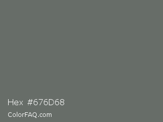 Hex #676d68 Color is a normal green color and the nearest color is Dim Gray #696969. Hex code #676d68 and RGB value is rgb(103,109,104). In RGB color space, this color is composed of 40% red, 43% green, 41% blue, In CMYK color space, this color is composed of 6% cyan, 0% magenta, 5% yellow , 57% black , In HSL color space, this color has a hue angle of 130° , 3% saturation and 42% lightness.