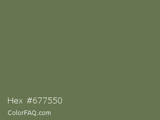 Hex #677550 Color is a normal green color and the nearest color is Siam #646a54. Hex code #677550 and RGB value is rgb(103,117,80). In RGB color space, this color is composed of 40% red, 46% green, 31% blue, In CMYK color space, this color is composed of 12% cyan, 0% magenta, 32% yellow , 54% black , In HSL color space, this color has a hue angle of 83° , 19% saturation and 39% lightness.