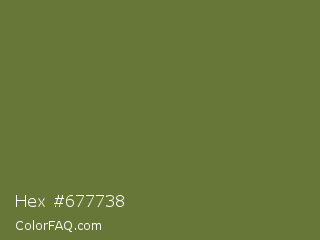 Hex #677738 Color is a normal lime color and the nearest color is Dingley #5d7747. Hex code #677738 and RGB value is rgb(103,119,56). In RGB color space, this color is composed of 40% red, 47% green, 22% blue, In CMYK color space, this color is composed of 13% cyan, 0% magenta, 53% yellow , 53% black , In HSL color space, this color has a hue angle of 75° , 36% saturation and 34% lightness.