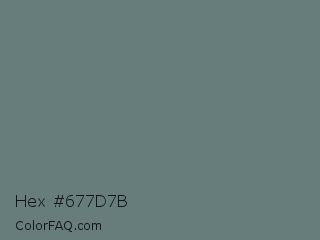 Hex #677d7b Color is a normal cyan color and the nearest color is Aurometalsaurus #6e7f80. Hex code #677d7b and RGB value is rgb(103,125,123). In RGB color space, this color is composed of 40% red, 49% green, 48% blue, In CMYK color space, this color is composed of 18% cyan, 0% magenta, 2% yellow , 51% black , In HSL color space, this color has a hue angle of 175° , 10% saturation and 45% lightness.