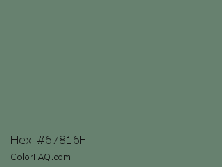 Hex #67816f Color is a normal green color and the nearest color is Viridian Green #678975. Hex code #67816f and RGB value is rgb(103,129,111). In RGB color space, this color is composed of 40% red, 51% green, 44% blue, In CMYK color space, this color is composed of 20% cyan, 0% magenta, 14% yellow , 49% black , In HSL color space, this color has a hue angle of 138° , 11% saturation and 45% lightness.