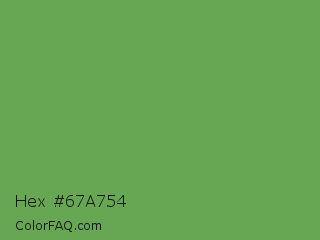 Hex #67a754 Color is a normal green color and the nearest color is Asparagus Green #7ba05b. Hex code #67a754 and RGB value is rgb(103,167,84). In RGB color space, this color is composed of 40% red, 65% green, 33% blue, In CMYK color space, this color is composed of 38% cyan, 0% magenta, 50% yellow , 35% black , In HSL color space, this color has a hue angle of 106° , 33% saturation and 49% lightness.