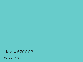 Hex #67cccb Color is a normal cyan color and the nearest color is Downy #6fd0c5. Hex code #67cccb and RGB value is rgb(103,204,203). In RGB color space, this color is composed of 40% red, 80% green, 80% blue, In CMYK color space, this color is composed of 50% cyan, 0% magenta, 0% yellow , 20% black , In HSL color space, this color has a hue angle of 179° , 50% saturation and 60% lightness.