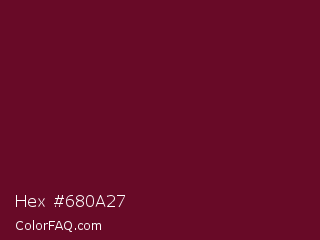 Hex #680a27 Color is a very dark rose color and the nearest color is Black Rose #67032d. Hex code #680a27 and RGB value is rgb(104,10,39). In RGB color space, this color is composed of 41% red, 4% green, 15% blue, In CMYK color space, this color is composed of 0% cyan, 90% magenta, 63% yellow , 59% black , In HSL color space, this color has a hue angle of 341° , 82% saturation and 22% lightness.