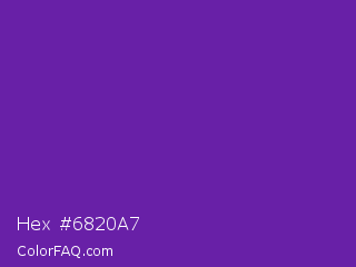 Hex #6820a7 Color is a normal purple color and the nearest color is Grape #6f2da8. Hex code #6820a7 and RGB value is rgb(104,32,167). In RGB color space, this color is composed of 41% red, 13% green, 65% blue, In CMYK color space, this color is composed of 38% cyan, 81% magenta, 0% yellow , 35% black , In HSL color space, this color has a hue angle of 272° , 68% saturation and 39% lightness.