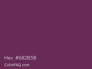 Hex #682b58 Color is a dark magenta color and the nearest color is Finn #692d54. Hex code #682b58 and RGB value is rgb(104,43,88). In RGB color space, this color is composed of 41% red, 17% green, 35% blue, In CMYK color space, this color is composed of 0% cyan, 59% magenta, 15% yellow , 59% black , In HSL color space, this color has a hue angle of 316° , 41% saturation and 29% lightness.
