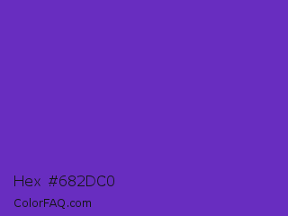 Hex #682dc0 Color is a normal violet color and the nearest color is Purple Heart Crayola #652dc1. Hex code #682dc0 and RGB value is rgb(104,45,192). In RGB color space, this color is composed of 41% red, 18% green, 75% blue, In CMYK color space, this color is composed of 46% cyan, 77% magenta, 0% yellow , 25% black , In HSL color space, this color has a hue angle of 264° , 62% saturation and 46% lightness.