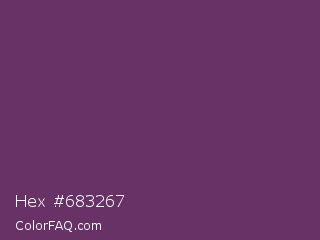 Hex #683267 Color is a dark magenta color and the nearest color is Imperial #602f6b. Hex code #683267 and RGB value is rgb(104,50,103). In RGB color space, this color is composed of 41% red, 20% green, 40% blue, In CMYK color space, this color is composed of 0% cyan, 52% magenta, 1% yellow , 59% black , In HSL color space, this color has a hue angle of 301° , 35% saturation and 30% lightness.