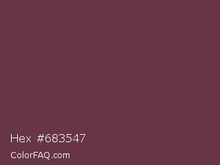 Hex #683547 Color is a normal rose color and the nearest color is Wine Dregs #673147. Hex code #683547 and RGB value is rgb(104,53,71). In RGB color space, this color is composed of 41% red, 21% green, 28% blue, In CMYK color space, this color is composed of 0% cyan, 49% magenta, 32% yellow , 59% black , In HSL color space, this color has a hue angle of 339° , 32% saturation and 31% lightness.
