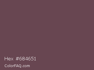 Hex #684651 Color is a normal rose color and the nearest color is Deep Tuscan Red #66424d. Hex code #684651 and RGB value is rgb(104,70,81). In RGB color space, this color is composed of 41% red, 27% green, 32% blue, In CMYK color space, this color is composed of 0% cyan, 33% magenta, 22% yellow , 59% black , In HSL color space, this color has a hue angle of 341° , 20% saturation and 34% lightness.