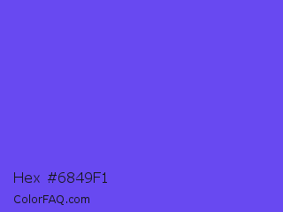 Hex #6849f1 Color is a light indigo color and the nearest color is Majorelle Blue #6050dc. Hex code #6849f1 and RGB value is rgb(104,73,241). In RGB color space, this color is composed of 41% red, 29% green, 95% blue, In CMYK color space, this color is composed of 57% cyan, 70% magenta, 0% yellow , 5% black , In HSL color space, this color has a hue angle of 251° , 86% saturation and 62% lightness.