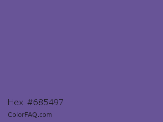 Hex #685497 Color is a normal indigo color and the nearest color is Butterfly Bush #624e9a. Hex code #685497 and RGB value is rgb(104,84,151). In RGB color space, this color is composed of 41% red, 33% green, 59% blue, In CMYK color space, this color is composed of 31% cyan, 44% magenta, 0% yellow , 41% black , In HSL color space, this color has a hue angle of 258° , 29% saturation and 46% lightness.