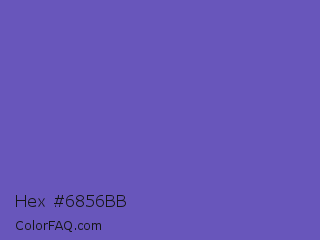 Hex #6856bb Color is a normal indigo color and the nearest color is Blue Violet #6456b7. Hex code #6856bb and RGB value is rgb(104,86,187). In RGB color space, this color is composed of 41% red, 34% green, 73% blue, In CMYK color space, this color is composed of 44% cyan, 54% magenta, 0% yellow , 27% black , In HSL color space, this color has a hue angle of 251° , 43% saturation and 54% lightness.