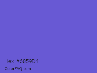 Hex #6859d4 Color is a normal indigo color and the nearest color is Slate Blue #6a5acd. Hex code #6859d4 and RGB value is rgb(104,89,212). In RGB color space, this color is composed of 41% red, 35% green, 83% blue, In CMYK color space, this color is composed of 51% cyan, 58% magenta, 0% yellow , 17% black , In HSL color space, this color has a hue angle of 247° , 59% saturation and 59% lightness.