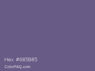 Hex #685b85 Color is a normal indigo color and the nearest color is Dolphin #646077. Hex code #685b85 and RGB value is rgb(104,91,133). In RGB color space, this color is composed of 41% red, 36% green, 52% blue, In CMYK color space, this color is composed of 22% cyan, 32% magenta, 0% yellow , 48% black , In HSL color space, this color has a hue angle of 259° , 19% saturation and 44% lightness.
