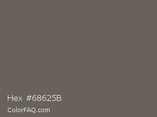 Hex #68625b Color is a normal orange color and the nearest color is Scorpion #695f62. Hex code #68625b and RGB value is rgb(104,98,91). In RGB color space, this color is composed of 41% red, 38% green, 36% blue, In CMYK color space, this color is composed of 0% cyan, 6% magenta, 13% yellow , 59% black , In HSL color space, this color has a hue angle of 32° , 7% saturation and 38% lightness.