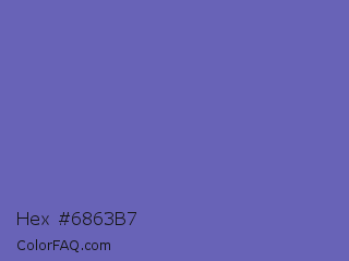 Hex #6863b7 Color is a normal indigo color and the nearest color is Blue Violet #6456b7. Hex code #6863b7 and RGB value is rgb(104,99,183). In RGB color space, this color is composed of 41% red, 39% green, 72% blue, In CMYK color space, this color is composed of 43% cyan, 46% magenta, 0% yellow , 28% black , In HSL color space, this color has a hue angle of 244° , 37% saturation and 55% lightness.