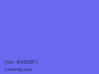 Hex #6868f1 Color is a light blue color and the nearest color is Very Light Blue #6666ff. Hex code #6868f1 and RGB value is rgb(104,104,241). In RGB color space, this color is composed of 41% red, 41% green, 95% blue, In CMYK color space, this color is composed of 57% cyan, 57% magenta, 0% yellow , 5% black , In HSL color space, this color has a hue angle of 240° , 83% saturation and 68% lightness.