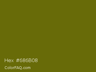Hex #686b08 Color is a dark yellow color and the nearest color is Olivetone #716e10. Hex code #686b08 and RGB value is rgb(104,107,8). In RGB color space, this color is composed of 41% red, 42% green, 3% blue, In CMYK color space, this color is composed of 3% cyan, 0% magenta, 93% yellow , 58% black , In HSL color space, this color has a hue angle of 62° , 86% saturation and 23% lightness.