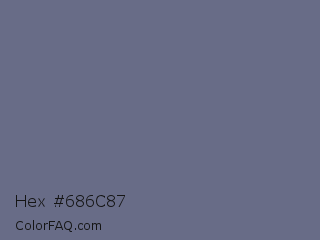 Hex #686c87 Color is a normal blue color and the nearest color is Storm Gray #717486. Hex code #686c87 and RGB value is rgb(104,108,135). In RGB color space, this color is composed of 41% red, 42% green, 53% blue, In CMYK color space, this color is composed of 23% cyan, 20% magenta, 0% yellow , 47% black , In HSL color space, this color has a hue angle of 232° , 13% saturation and 47% lightness.