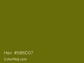 Hex #686d07 Color is a dark yellow color and the nearest color is Olivetone #716e10. Hex code #686d07 and RGB value is rgb(104,109,7). In RGB color space, this color is composed of 41% red, 43% green, 3% blue, In CMYK color space, this color is composed of 5% cyan, 0% magenta, 94% yellow , 57% black , In HSL color space, this color has a hue angle of 63° , 88% saturation and 23% lightness.