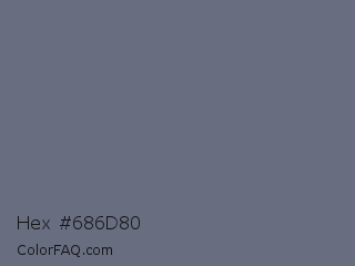 Hex #686d80 Color is a normal blue color and the nearest color is Nevada #646e75. Hex code #686d80 and RGB value is rgb(104,109,128). In RGB color space, this color is composed of 41% red, 43% green, 50% blue, In CMYK color space, this color is composed of 19% cyan, 15% magenta, 0% yellow , 50% black , In HSL color space, this color has a hue angle of 228° , 10% saturation and 45% lightness.