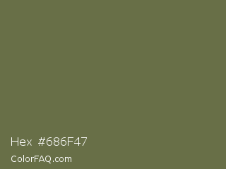 Hex #686f47 Color is a normal lime color and the nearest color is Finch #626649. Hex code #686f47 and RGB value is rgb(104,111,71). In RGB color space, this color is composed of 41% red, 44% green, 28% blue, In CMYK color space, this color is composed of 6% cyan, 0% magenta, 36% yellow , 56% black , In HSL color space, this color has a hue angle of 71° , 22% saturation and 36% lightness.