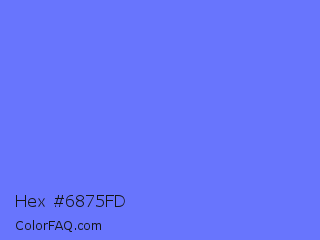 Hex #6875fd Color is a light blue color and the nearest color is Very Light Blue #6666ff. Hex code #6875fd and RGB value is rgb(104,117,253). In RGB color space, this color is composed of 41% red, 46% green, 99% blue, In CMYK color space, this color is composed of 59% cyan, 54% magenta, 0% yellow , 1% black , In HSL color space, this color has a hue angle of 235° , 97% saturation and 70% lightness.