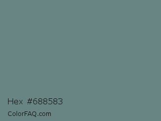 Hex #688583 Color is a normal cyan color and the nearest color is Aurometalsaurus #6e7f80. Hex code #688583 and RGB value is rgb(104,133,131). In RGB color space, this color is composed of 41% red, 52% green, 51% blue, In CMYK color space, this color is composed of 22% cyan, 0% magenta, 2% yellow , 48% black , In HSL color space, this color has a hue angle of 176° , 12% saturation and 46% lightness.
