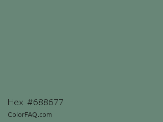 Hex #688677 Color is a normal green color and the nearest color is Viridian Green #678975. Hex code #688677 and RGB value is rgb(104,134,119). In RGB color space, this color is composed of 41% red, 53% green, 47% blue, In CMYK color space, this color is composed of 22% cyan, 0% magenta, 11% yellow , 47% black , In HSL color space, this color has a hue angle of 150° , 13% saturation and 47% lightness.