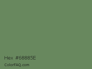 Hex #68885e Color is a normal green color and the nearest color is Glade Green #61845f. Hex code #68885e and RGB value is rgb(104,136,94). In RGB color space, this color is composed of 41% red, 53% green, 37% blue, In CMYK color space, this color is composed of 24% cyan, 0% magenta, 31% yellow , 47% black , In HSL color space, this color has a hue angle of 106° , 18% saturation and 45% lightness.