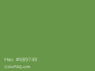 Hex #689749 Color is a normal green color and the nearest color is Palm Leaf #6f9940. Hex code #689749 and RGB value is rgb(104,151,73). In RGB color space, this color is composed of 41% red, 59% green, 29% blue, In CMYK color space, this color is composed of 31% cyan, 0% magenta, 52% yellow , 41% black , In HSL color space, this color has a hue angle of 96° , 35% saturation and 44% lightness.