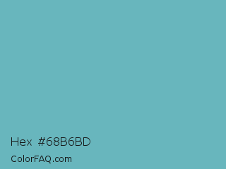 Hex #68b6bd Color is a normal cyan color and the nearest color is Moonstone Blue #73a9c2. Hex code #68b6bd and RGB value is rgb(104,182,189). In RGB color space, this color is composed of 41% red, 71% green, 74% blue, In CMYK color space, this color is composed of 45% cyan, 4% magenta, 0% yellow , 26% black , In HSL color space, this color has a hue angle of 185° , 39% saturation and 57% lightness.