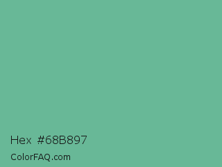 Hex #68b897 Color is a normal green color and the nearest color is Silver Tree #66b58f. Hex code #68b897 and RGB value is rgb(104,184,151). In RGB color space, this color is composed of 41% red, 72% green, 59% blue, In CMYK color space, this color is composed of 43% cyan, 0% magenta, 18% yellow , 28% black , In HSL color space, this color has a hue angle of 155° , 36% saturation and 56% lightness.