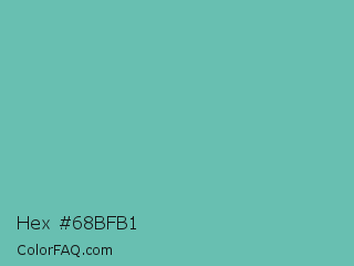 Hex #68bfb1 Color is a normal cyan color and the nearest color is Tradewind #5fb3ac. Hex code #68bfb1 and RGB value is rgb(104,191,177). In RGB color space, this color is composed of 41% red, 75% green, 69% blue, In CMYK color space, this color is composed of 46% cyan, 0% magenta, 7% yellow , 25% black , In HSL color space, this color has a hue angle of 170° , 40% saturation and 58% lightness.