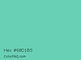 Hex #68d1b5 Color is a light cyan color and the nearest color is Medium Aquamarine #66ddaa. Hex code #68d1b5 and RGB value is rgb(104,209,181). In RGB color space, this color is composed of 41% red, 82% green, 71% blue, In CMYK color space, this color is composed of 50% cyan, 0% magenta, 13% yellow , 18% black , In HSL color space, this color has a hue angle of 164° , 53% saturation and 61% lightness.