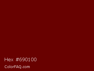 Hex #690100 Color is a very dark red color and the nearest color is Lonestar #6d0101. Hex code #690100 and RGB value is rgb(105,1,0). In RGB color space, this color is composed of 41% red, 0% green, 0% blue, In CMYK color space, this color is composed of 0% cyan, 99% magenta, 100% yellow , 59% black , In HSL color space, this color has a hue angle of 1° , 100% saturation and 21% lightness.